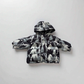 Abrigo forrado de algodón ecológico a prueba de viento estampado animal de invierno informal con capucha para niños baratos al por mayor