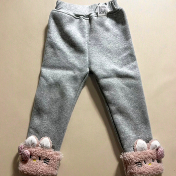 Venta al por mayor niñas invierno gris polar forrado grueso a prueba de viento Bottoms Leggings para niñas ropa de invierno